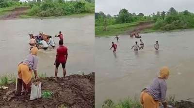 प्रसव पीड़ा में नदी पार करने को मजबूर महिला, बैलगाड़ी का वीडियो देख लोग बोले- यह है असली भारत!