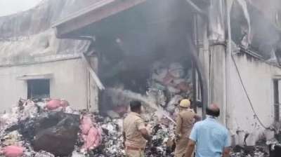 शॉर्ट सर्किट की वजह से डायपर बनाने वाली फैक्ट्री में भीषण आग लगी