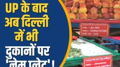 अब दिल्ली में भी नेम प्लेट नजफगढ़ सब्जी मंडी की दुकानों पर लिखा गया नाम और नंबर